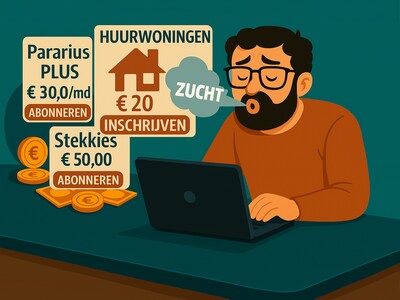 Twee tientjes inschrijfgeld hier, vijftig euro abonnementskosten daar. Wie op zoek is naar een huurwoning in een stad als Utrecht betaalt zich scheel aan allerlei zoeksites en makelaars voordat er ook maar één keer bezichtigd is. Áls je al een uitnodiging krijgt voor een bezichtiging, want het aanbod is bedroevend klein en de concurrentie moordend. Zo ondervond ook deze verslaggever.