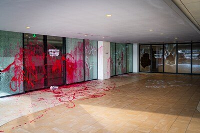 Afgelopen nacht hebben activisten een ravage aangericht bij het Rotterdamse hoofdkantoor van Maersk in de Willemswerf aan de Boompjes. Zo’n twintig ruiten van het pand zijn ingeslagen. Ook is het gebouw met rode verf beklad. Vier personen zijn aangehouden.