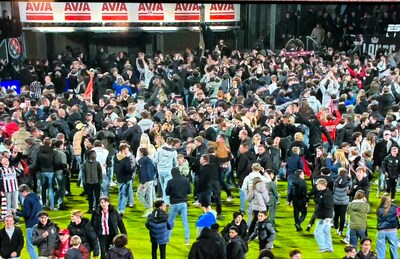 De Tilburgse vreugde-explosie na de gewonnen penaltyserie tegen FC Dordrecht zorgde alom voor verbazing. Willem II-fans bestormden zaterdag massaal het veld, terwijl het eredivisieticket nog niet is veiliggesteld. In een statement laat de club weten de veldbestorming ‘ten zeerste af te keuren. Supporters krijgen mogelijk zelfs een boete van 1000 euro.