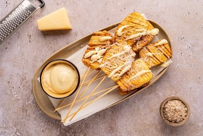 Deze accordeon aardappelen zijn de perfecte combinatie van krokant vanbuiten en zacht vanbinnen. Door de snijtechniek worden ze extra knapperig en heerlijk luchtig. Serveer ze met truffelmayonaise en Parmezaanse kaas voor een ultieme smaakbeleving.
